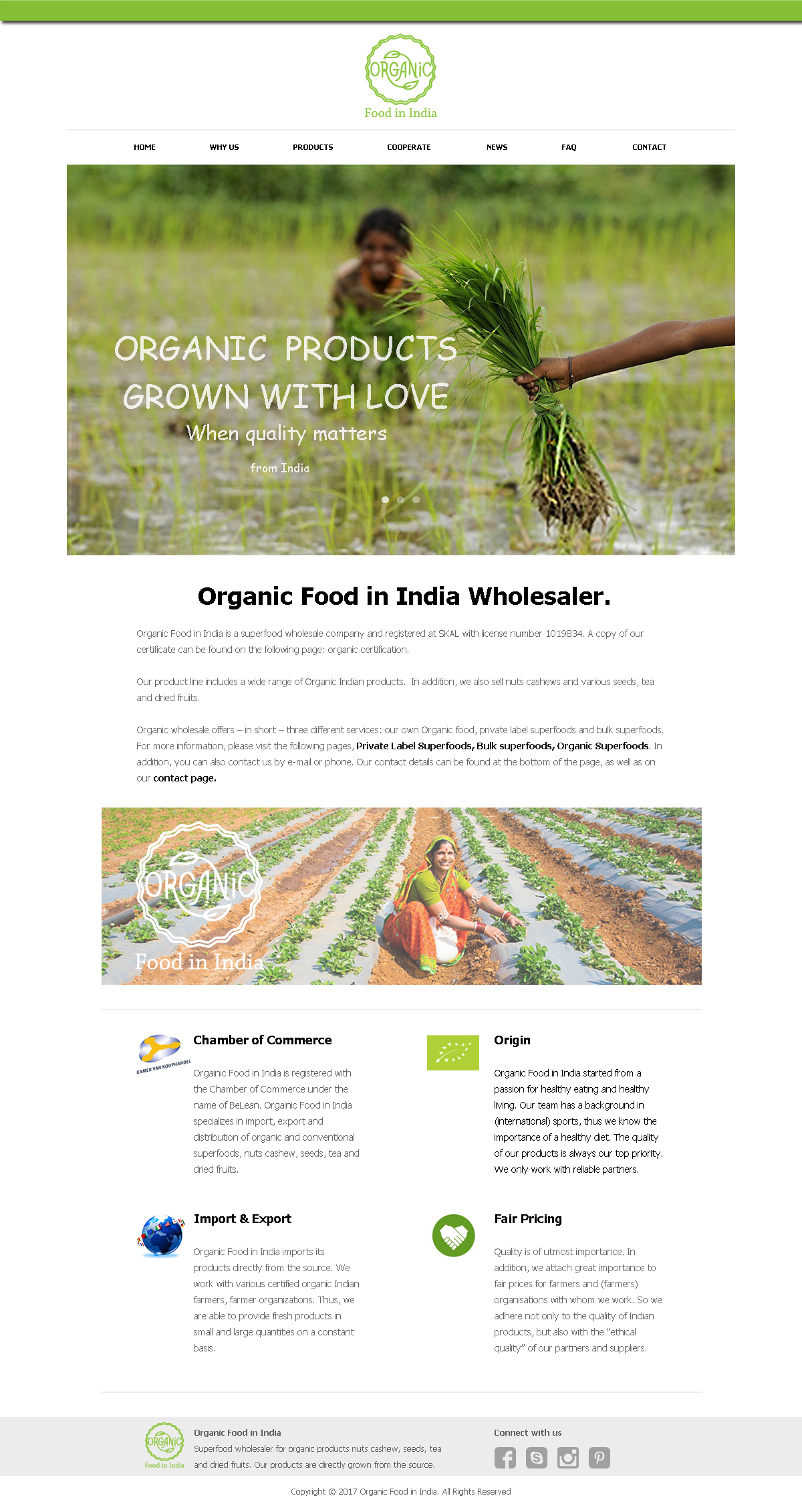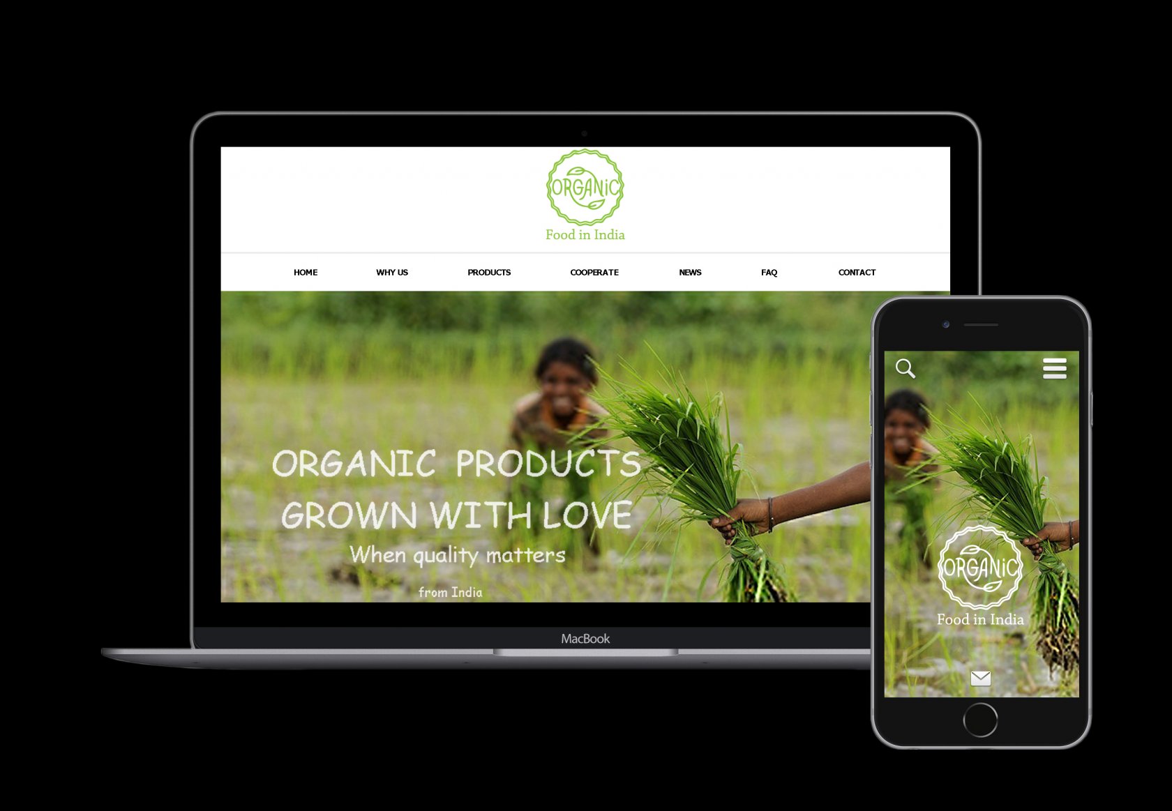 Web design for the company's Organic Food in India. Website design company-supplier of organic products from India around the world made in natural colors with a predominance of green color, with the use of juicy images of nature and people of this country.